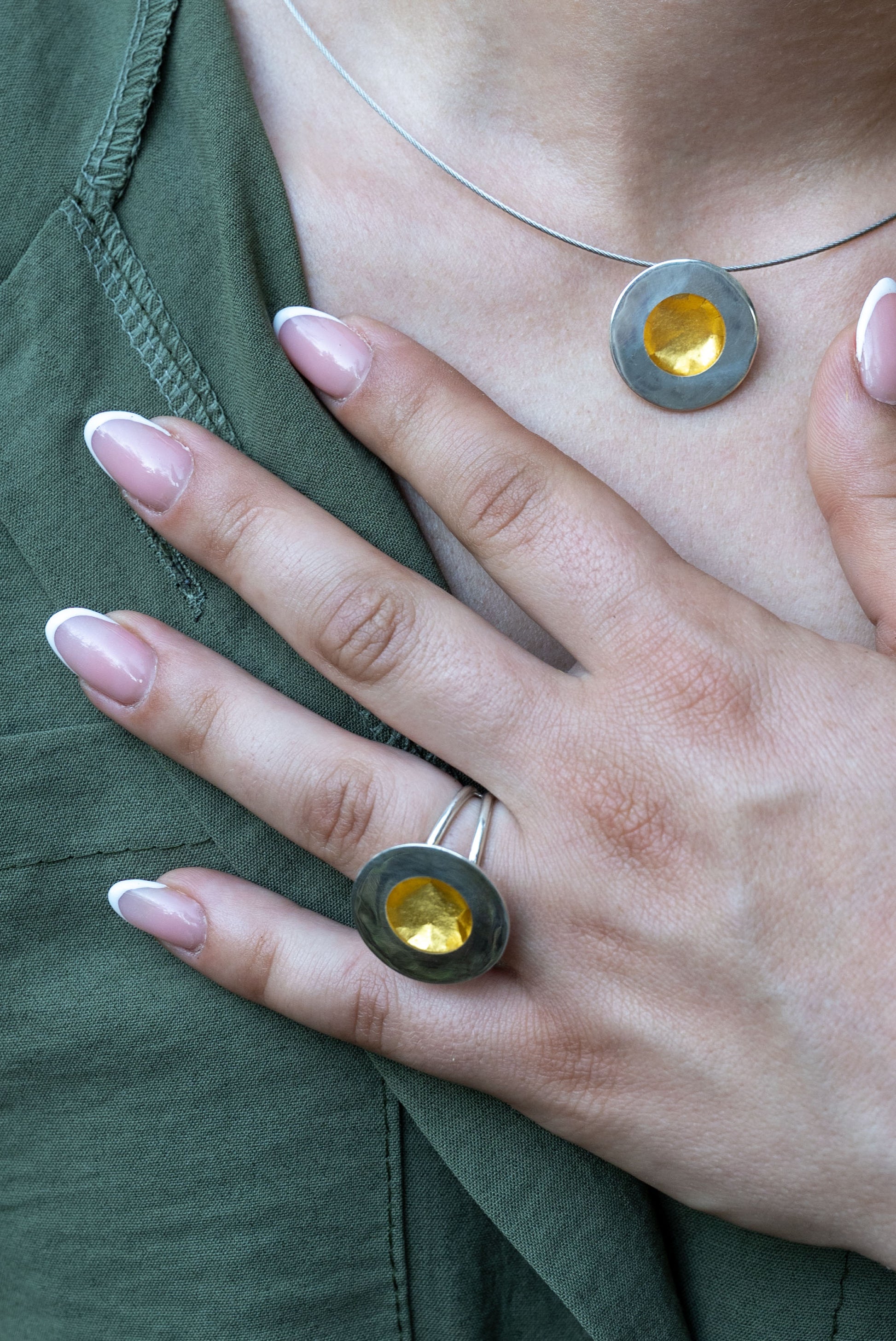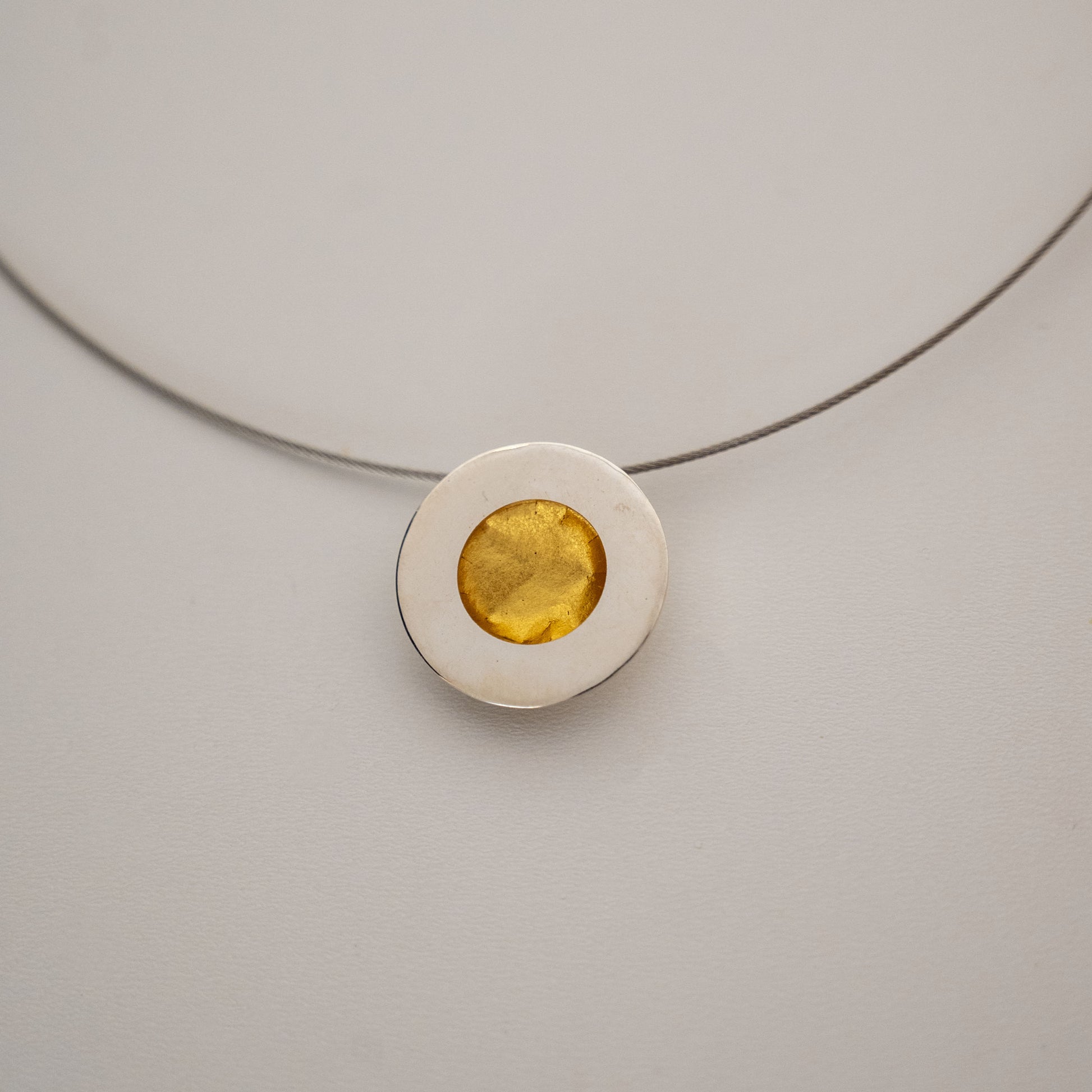 Κολιέ από ασήμι 925 με διάφανη ρητίνη και φύλλα χρυσού.