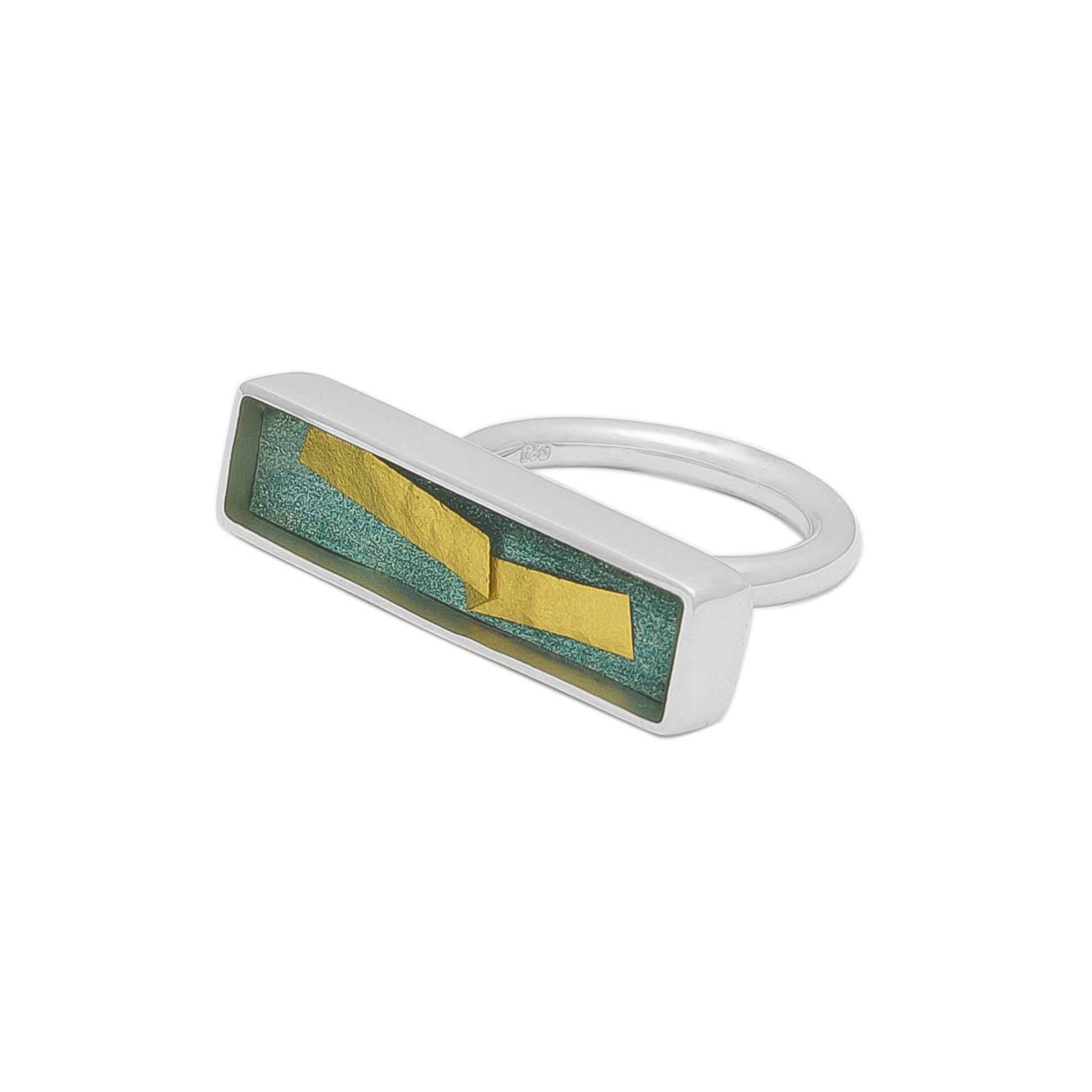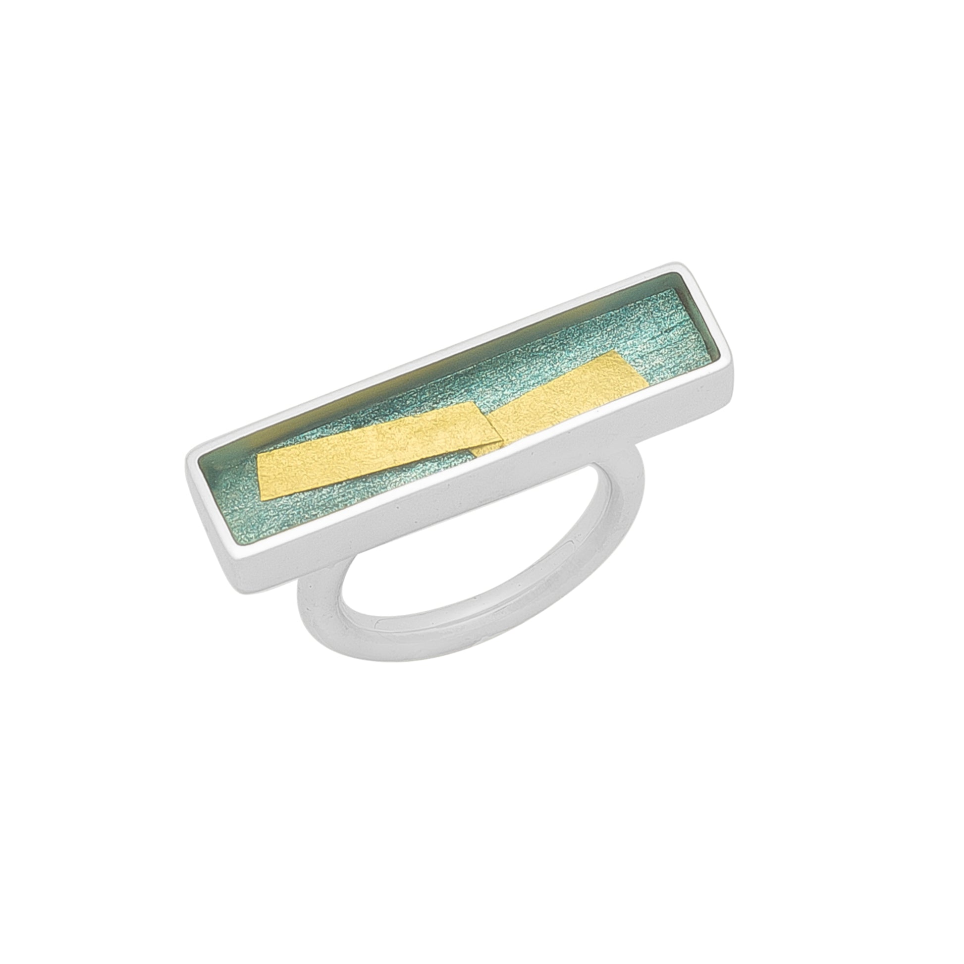 Δαχτυλίδι από ασήμι 925 με διάφανη ρητίνη και φύλλα χρυσού.