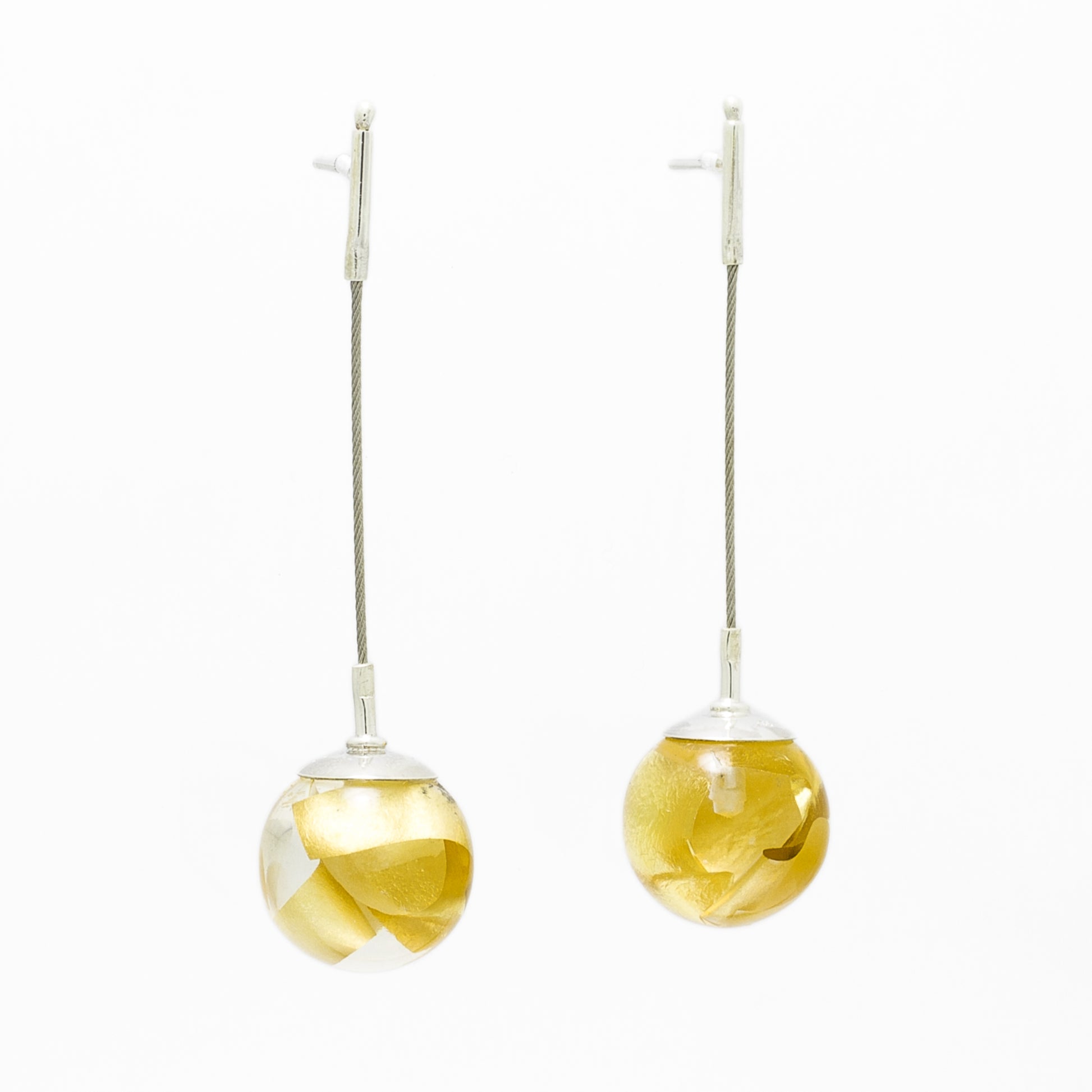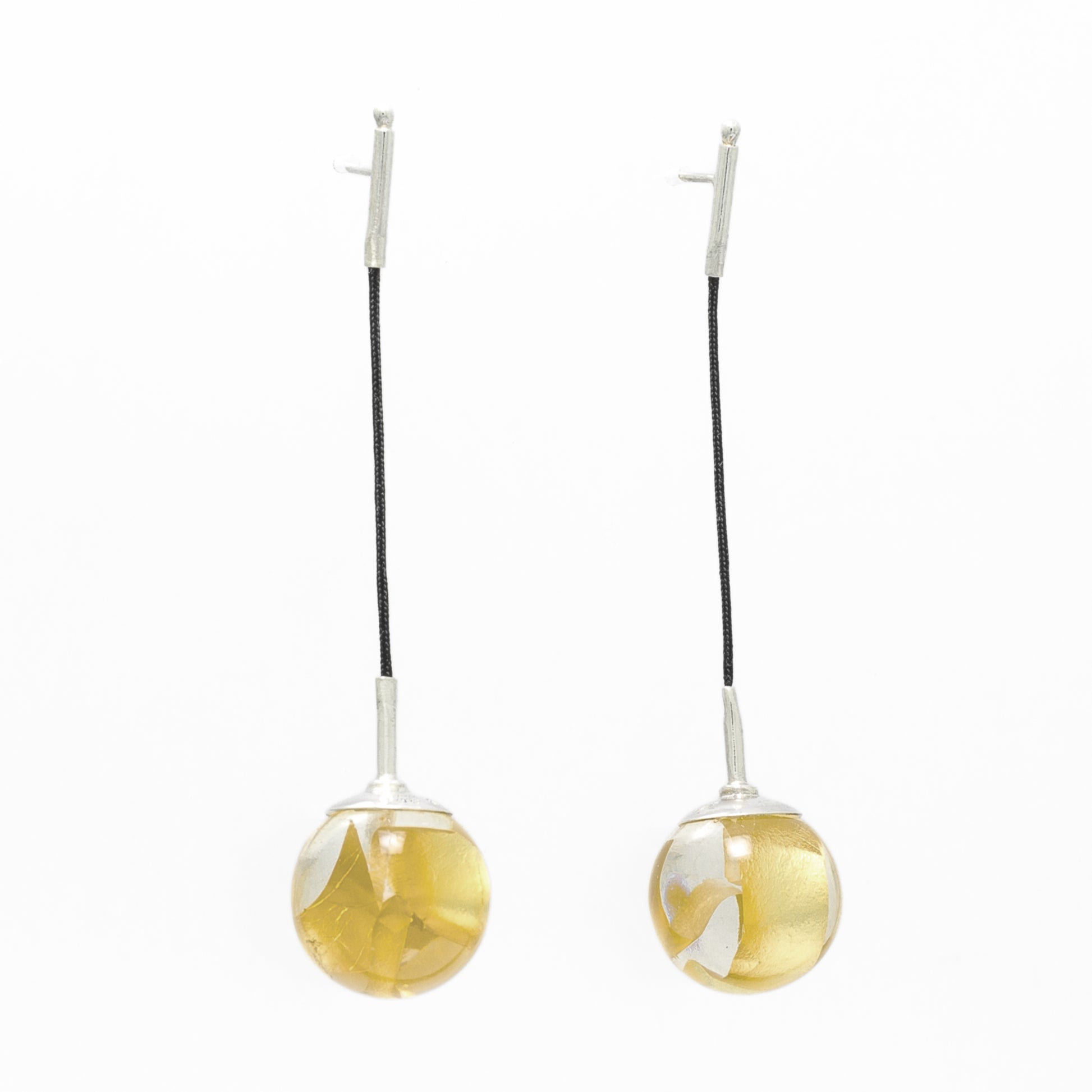 Σκουλαρίκια από ασήμι 925 με διαφανή ρητίνη και φύλλα χρυσού.