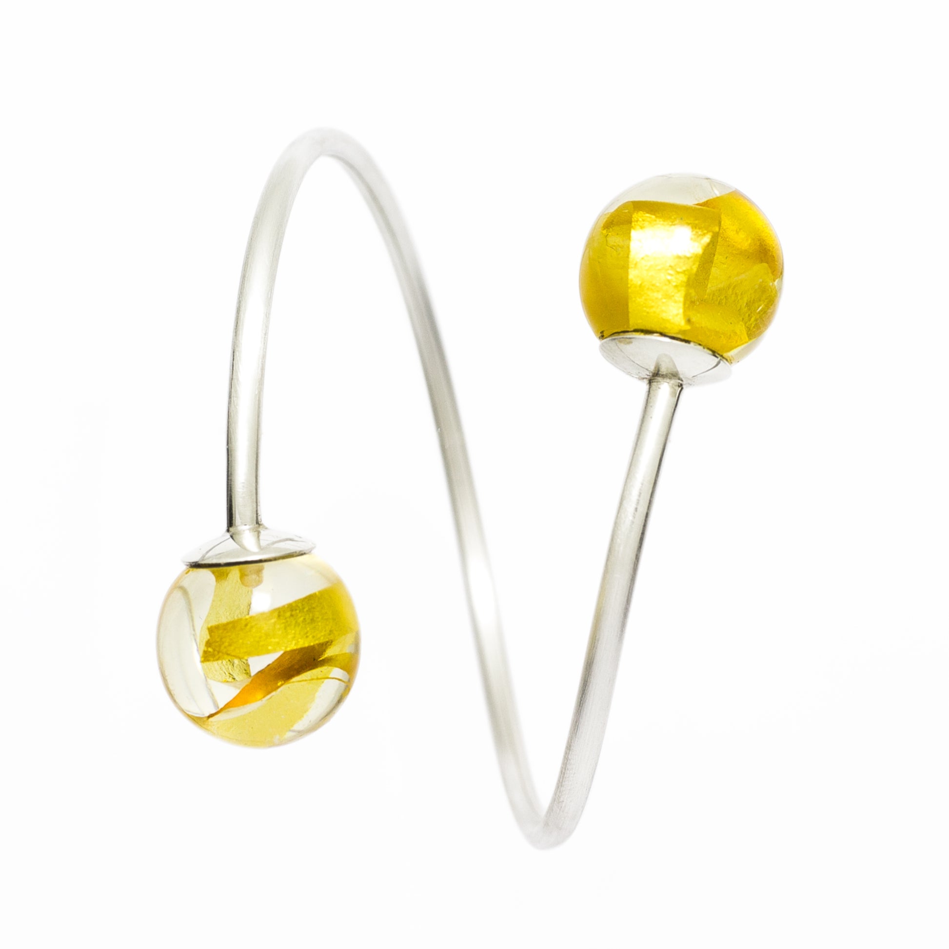 Βραχιόλι από ασήμι 925 με κούφιο σωλήνα, διαφανή ρητίνη και φύλλα χρυσού.