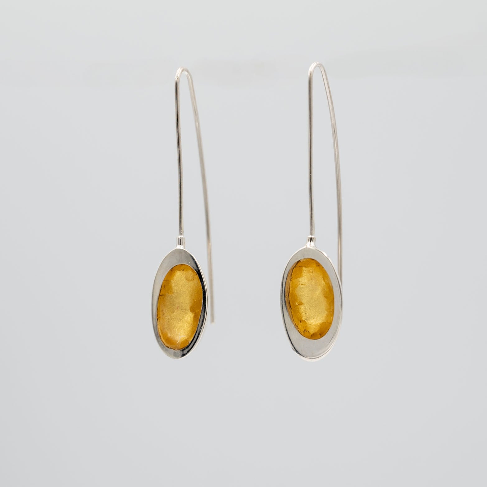 Sterling silver 925 earrings with transparent resin and gold leaves.