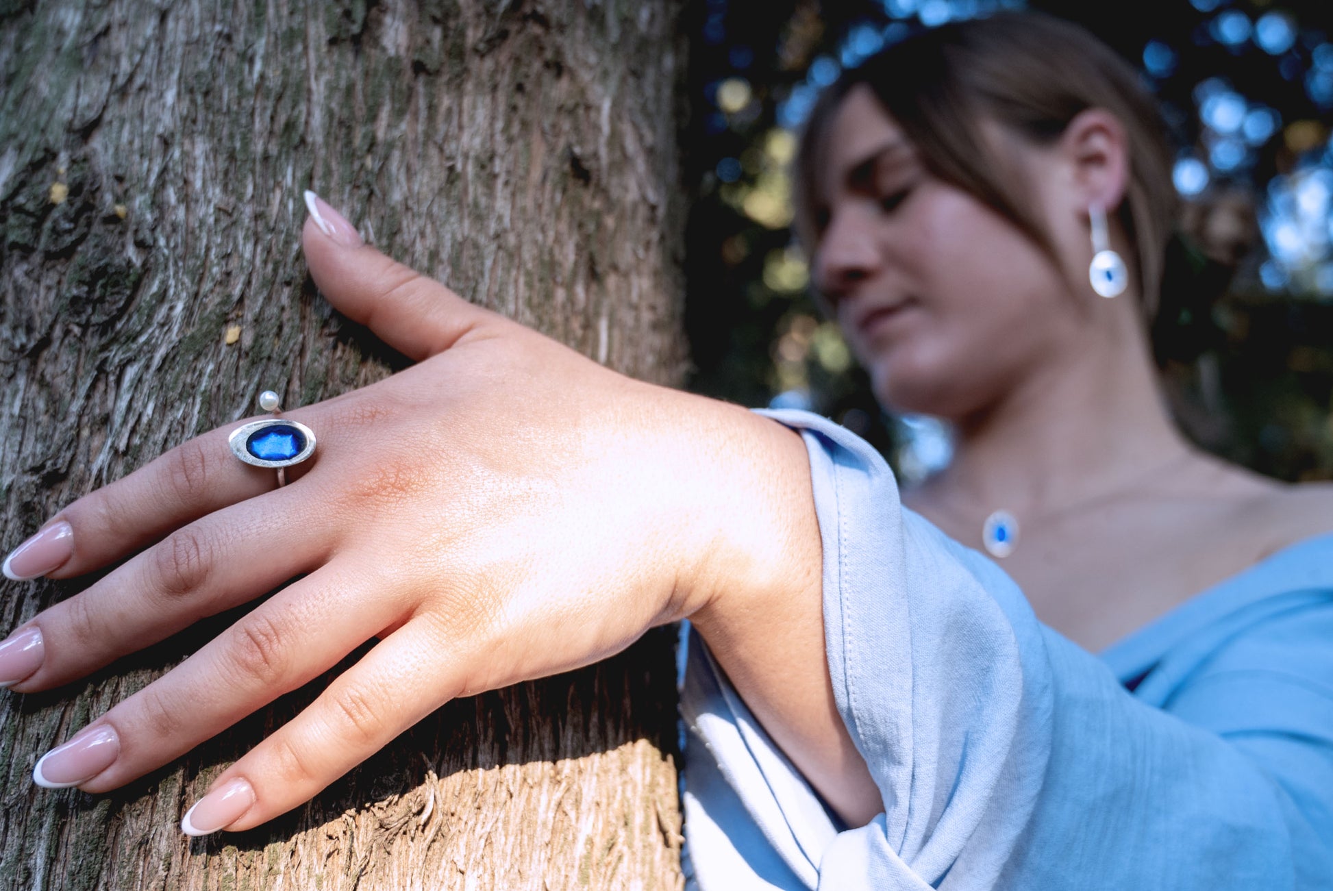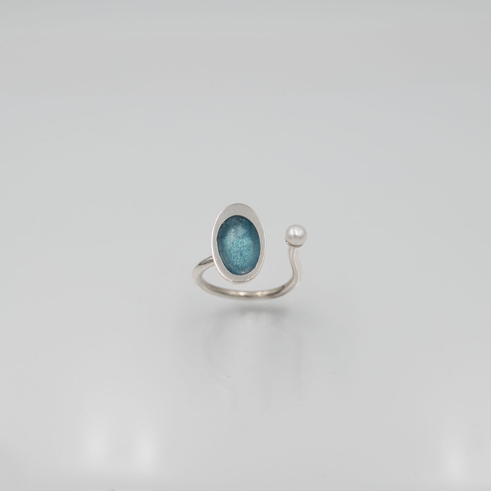 Sterling silver 925 ring with transparent resin and fresh water pearl.