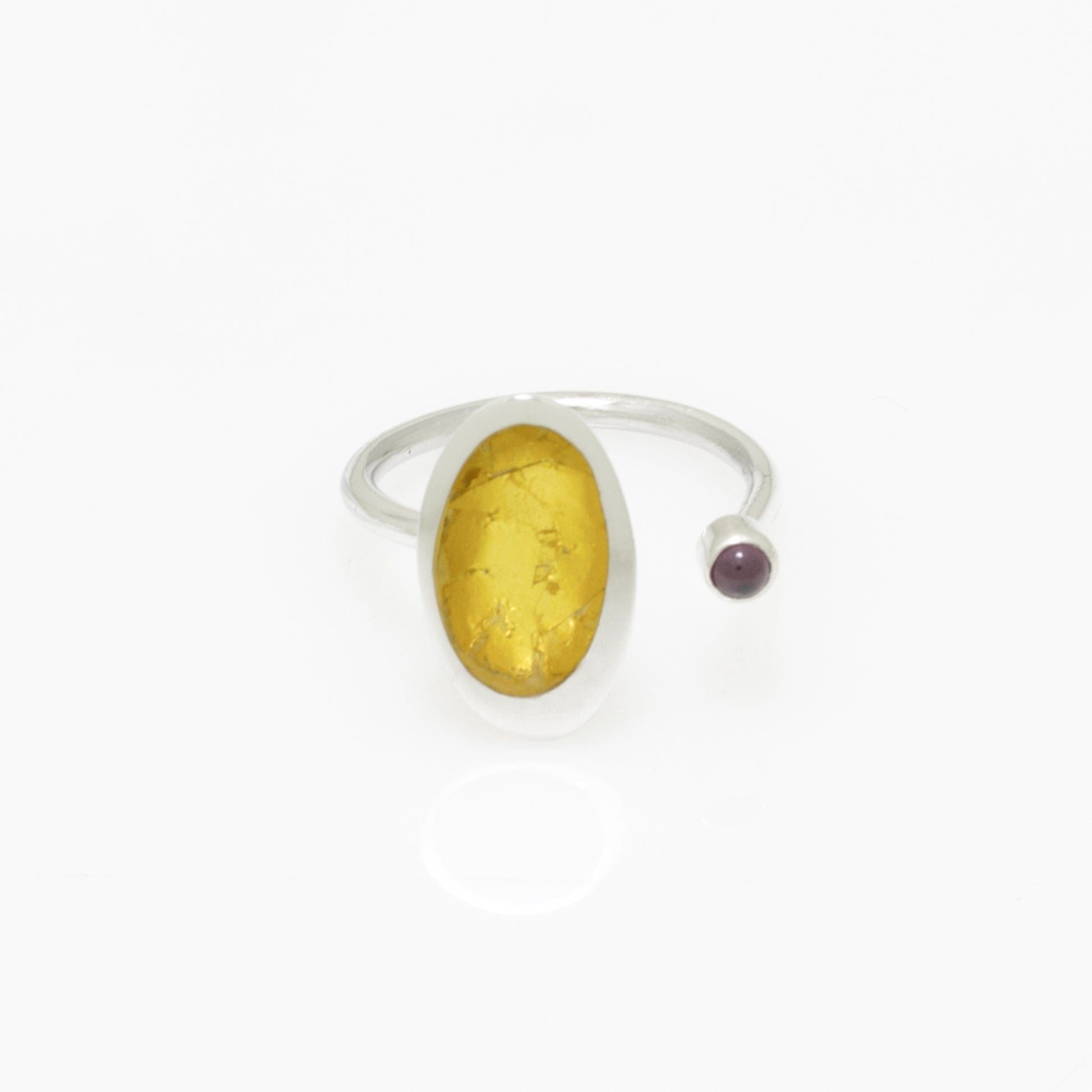 Sterling silver 925 ring with transparent resin and Amethyst.